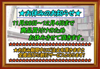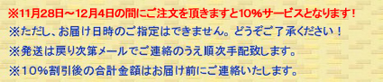 ★11月28日〜12月4日の間にご注文を頂きますと10%サービスとなります。